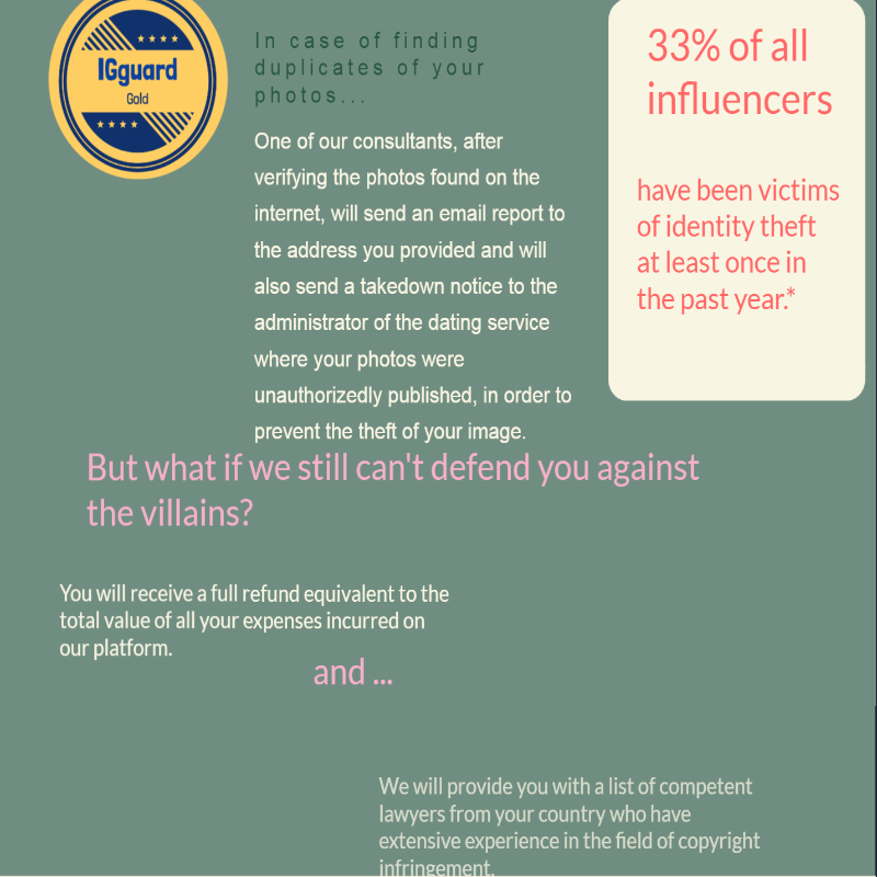 There is always a person behind every successful product. The case is identical here. The Ig-Guard service has been developed by individuals fully committed to their work. By adopting existing AI tools available on the market and adjusting them for the purpose of advanced photo recognition, we have created a website that lowers the likelihood of losing